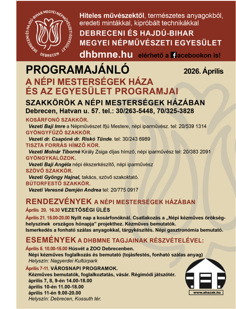Hírek, információk a Debreceni és Hajdú-Bihar Megyei Népművészeti Egyesület életéről